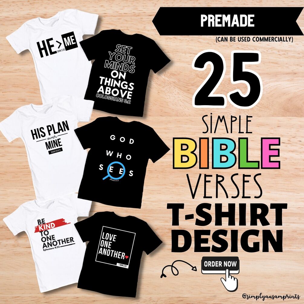 25 PREMADE T-shirt Christian Bible Verse Designs